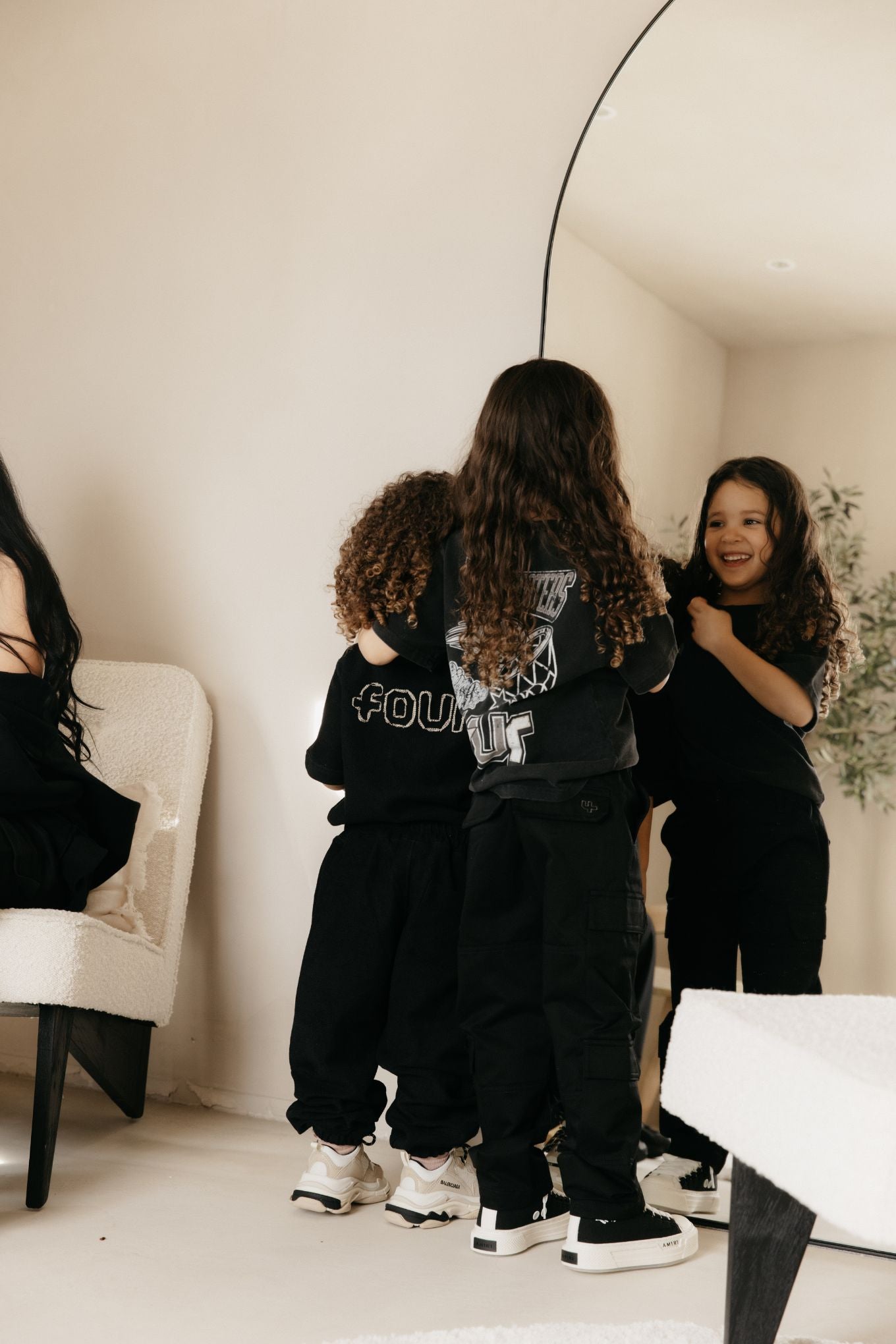 Néla already enjoys choosing her own clothes and lately, she knows exactly what she wants to wear. The rest of the kids are not so concerned with it yet. We describe our own clothing style as minimalist and above all comfortable. With three children, it's important to feel comfortable. We also love to dress up for special occasions.